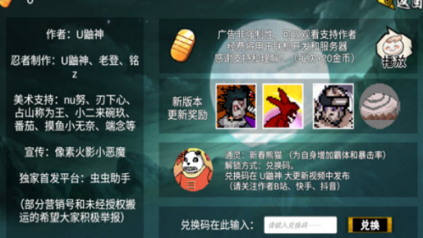 3、内置像素画板自定义角色配色、招式名称与特效帧,上传分享获赞可进官方周赛,让全世界用你的“二创佐助”战斗。