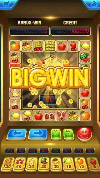 一款九线十五转的街机类手机游戏,该游戏参照连线机的模式,每轮中奖后都有猜大小的游戏。