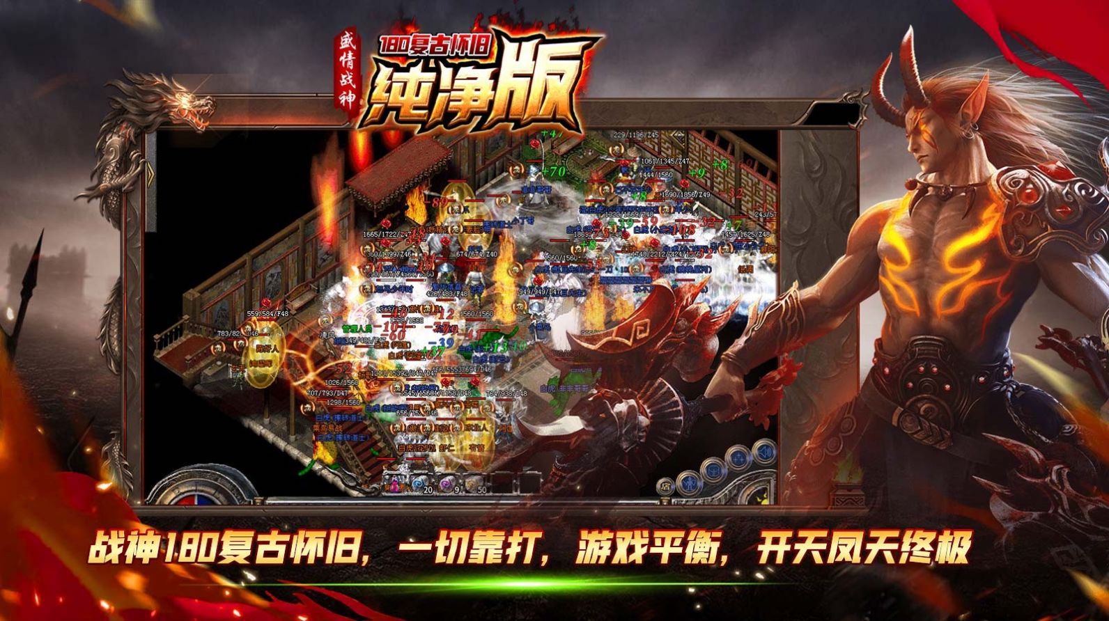 盛情战神180复古手游是一款怀旧风格的传奇冒险打怪游戏,玩家扮演一名勇者,探索未知的大陆,与伙伴们一起,挑战凶猛怪兽,收集神装,提升实力,最终成为大陆上的传奇人物。