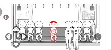 3、先来个第一关卡,在一辆公交车上,身为察言观色的你要主动往左侧让出两个位置给路人。