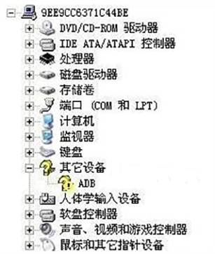 6.找到是否出现一个打着黄色问号的设备 (如下图)。如果没有找到,说明可能已经安装过ADB驱动,前往下一步。      3、鼠标右键点击带黄色问号设备,选择【更新驱动】。弹出后点击【下一步】,