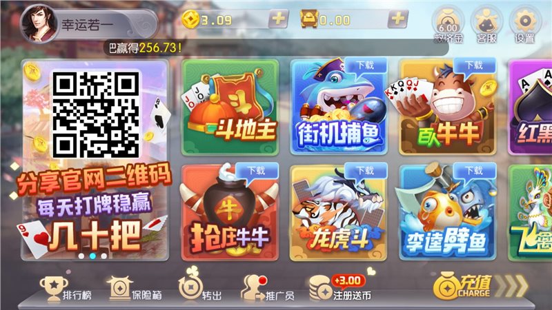 1、非常劲爆的有奖棋牌游戏,惊喜大奖免费抽,每天在线金币和救济金领不停