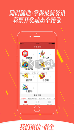 4、支持随时随地查看最新的彩票开奖状况,玩家可以实时将自己选取的号码在开奖直播间进行对照,或者直接等待平台为你发送的中奖通知。